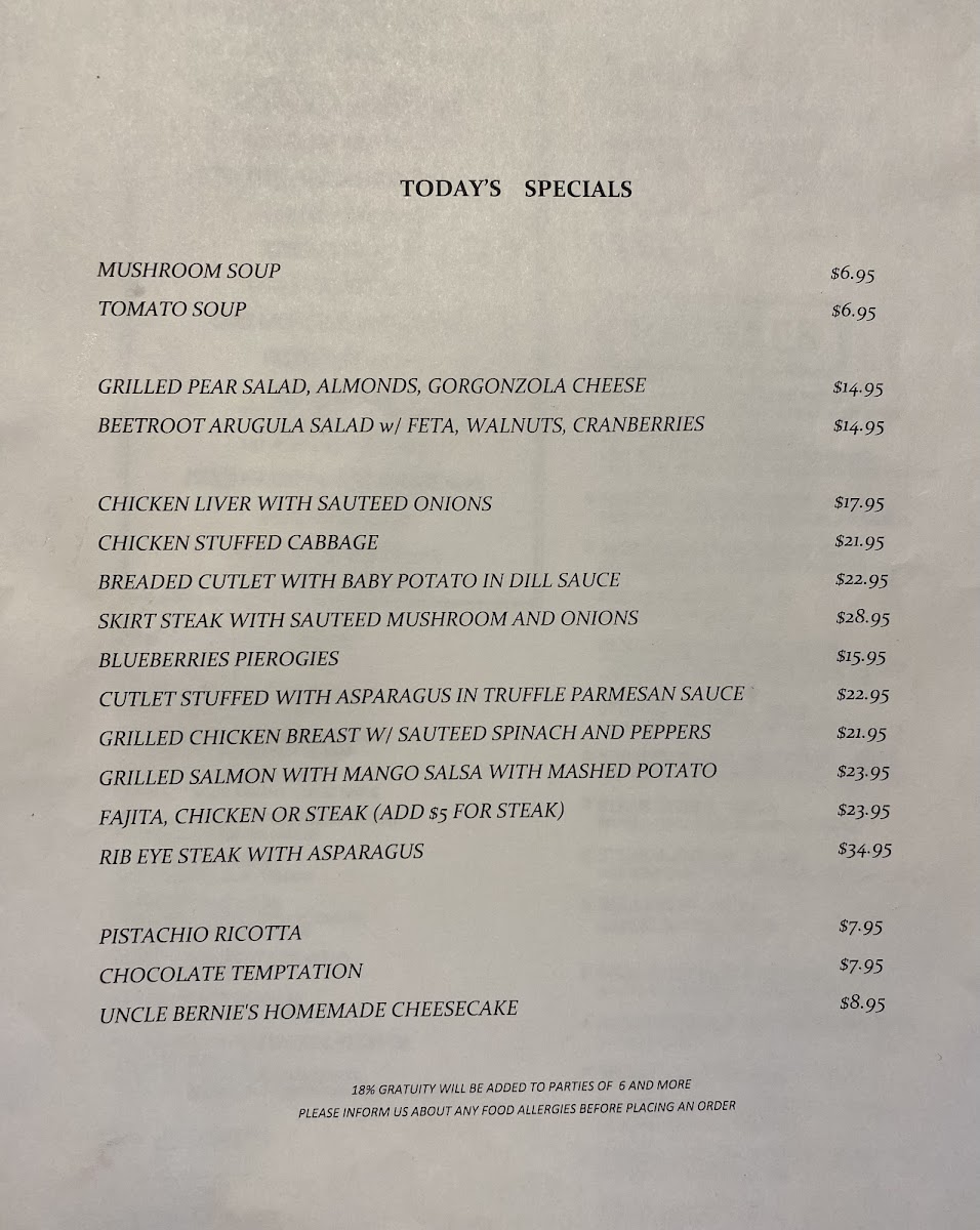 Choice of: Potato & Cheese, Sauerkraut & Mushroom, or Meat. Deep Fried or Pan Fried add $2.00